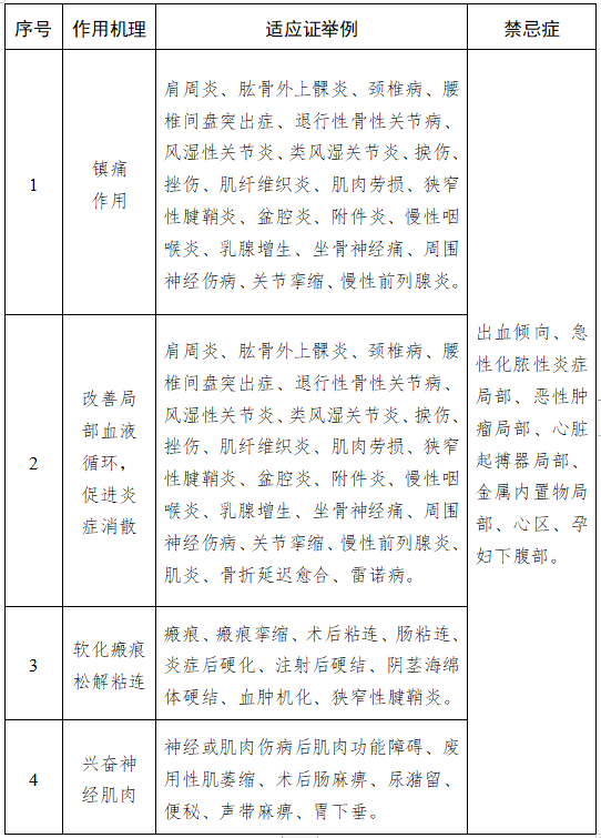 中频产品的禁忌症至少应包括表3中“禁忌症”部分的内容。